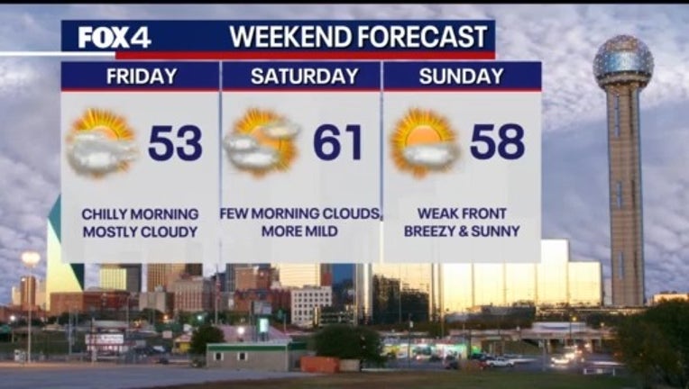 DALLAS – A pleasant, rain-free weekend is expected across North Texas, offering a break from the colder conditions earlier in the week.