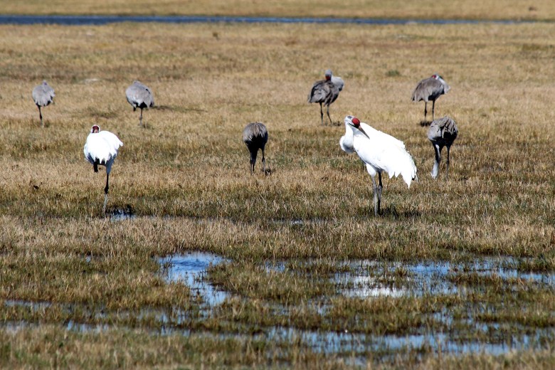 A good place to spot whooping cranes is in the field at Eighth Street and Lamar Beach Road in Lamar. Credit: Gerald E. McLeod
