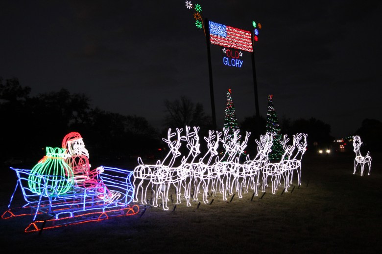 Follow Santa to a world of colored lights beside Lake Marble Falls. Credit: Gerald E. McLeod