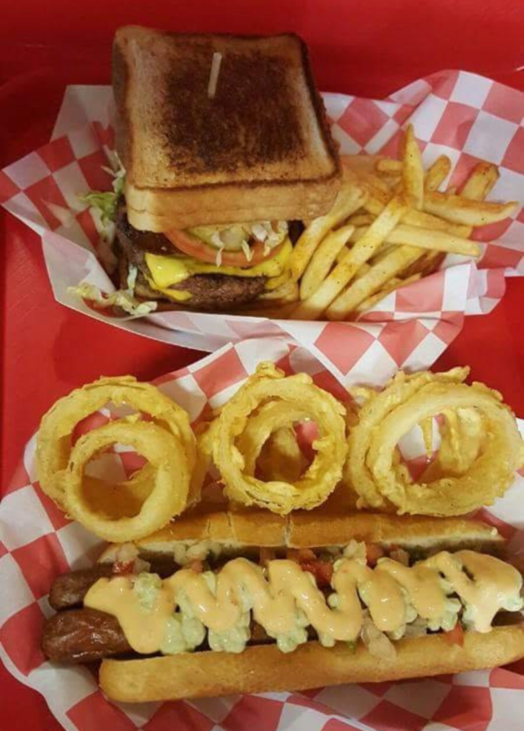 ” I had the Mad Mack Burger and it was delicious from the first to the last bite. The double patties were perfectly cooked and seasoned and absolutely juicy in a good way. I can honestly say this is one of the best hamburgers I’ve had in years. And I’ve eaten hundreds, if not thousands over the years. The buns are Texas toast grilled cheese sandwiches. Yes, grilled cheese sandwiches as the buns. It was awesome. And if that wasn’t enough, Bacon and two giant onion rings. Stop reading and get to the front of the line and order a burger and prepare to fall in love. BTW…wear your stretchy pants because this is a monster burger.” – Jason B.