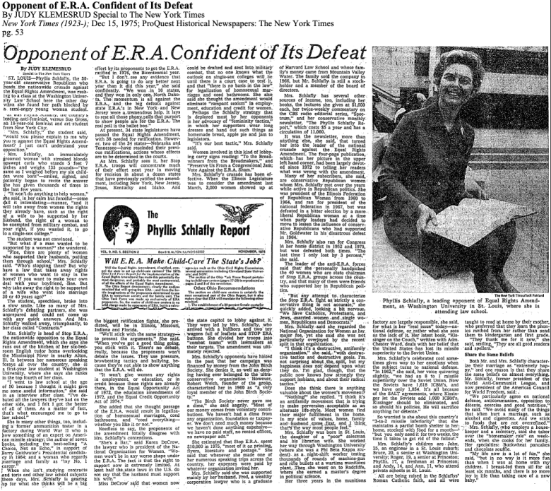 In the ‘70s, prominent conservative activist Phyllis Schlafly drew on those lingering fears in her fight against the Equal Rights Amendment, which would have guaranteed legal gender equality, telling the New York Times it would lead to coed bathrooms and “coed everything — whether you like it or not.” The women’s liberation movement, she added, was “an antifamily movement that is trying to make perversion acceptable as an alternative life-style.”