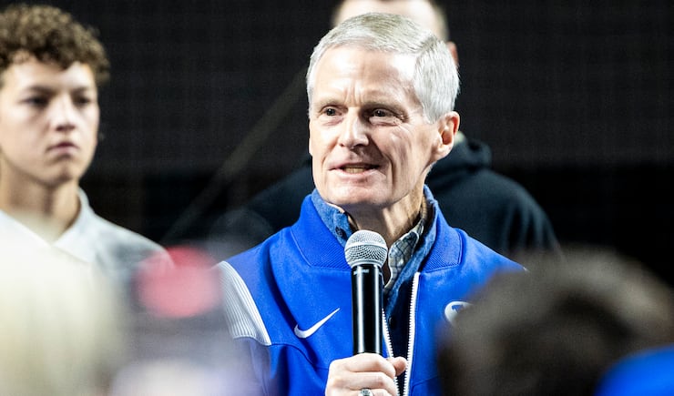Elder David A. Bednar, of the Quorum of the Twelve Apostles of The Church of Jesus Christ of Latter-day Saints, speaks during pregame festivities for BYU fans held the day before the Big 12 championship game at Globe Life Field in Arlington, Texas, on Friday, Dec. 5, 2025. | Isaac Hale, Deseret News