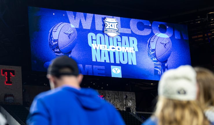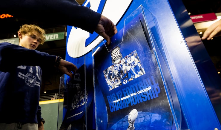 Fans take Big 12 posters during pregame festivities for BYU fans held the day before the Big 12 championship game at Globe Life Field in Arlington, Texas, on Friday, Dec. 5, 2025. | Isaac Hale, Deseret News