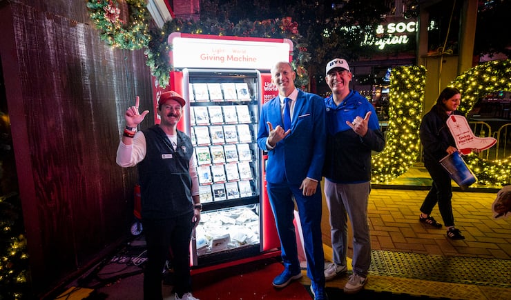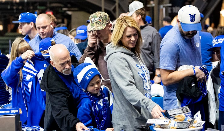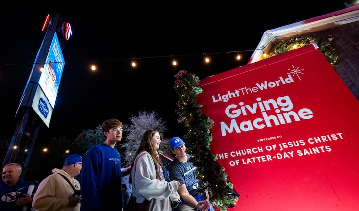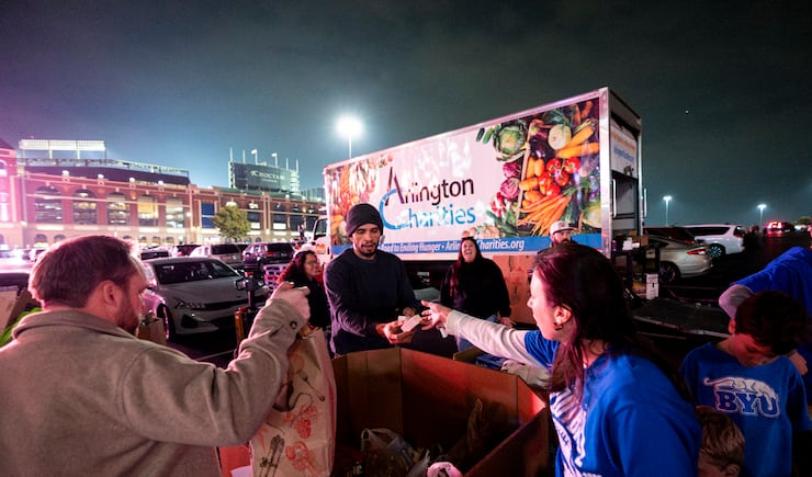 A food drive was organized on behalf of Arlington Charities, largest provider of supplemental food in the city.Two Light the World Giving Machines were placed right in between BYU and Texas Tech’s respective fan events Friday night in Arlington — BYU was at Globe Life Field, while Texas Tech was in the same complex at Texas Live.The Church of Jesus Christ of Latter-day Saints arranged for a truckload of 36,000 pounds of food to be sent out and donated between two local food banks in conjunction with BYU’s tailgate.The week following the championship game, BYU will send out 4,300 gallons of BYU Creamery milk to two other local food pantries who are currently low on milk supply.
