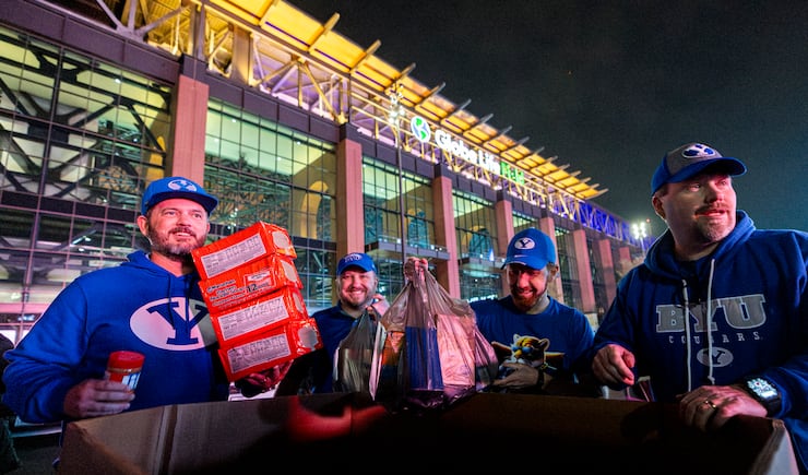 Before BYU’s tailgate had even begun on Friday, more than 700 pounds of food had been donated to Arlington Charities by fans of the Cougars and Red Raiders.