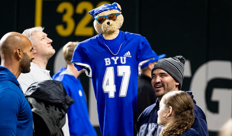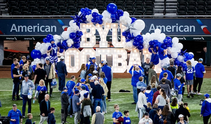 Thus, the BYU Alumni Association rented out Globe Life Field in Arlington — the home of Major League Baseball’s Texas Rangers — to host the tailgate festivities Friday night, with activities, Cougar Tails and plenty of other features for fans to enjoy in advance of Saturday’s contest.