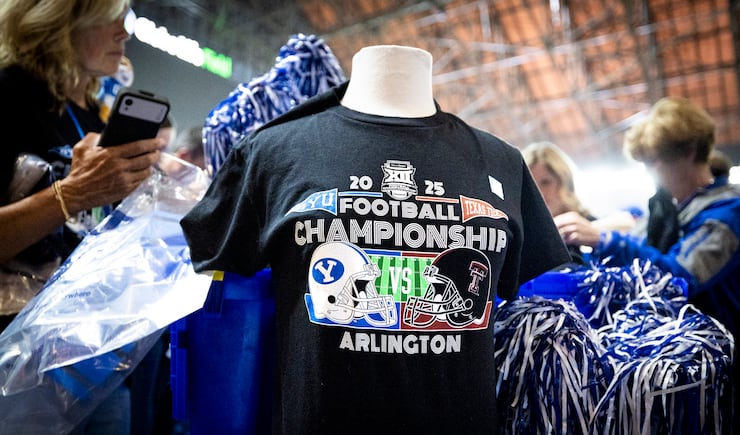 Fans check out BYU merchandise during pregame festivities for BYU fans held the day before the Big 12 championship game at Globe Life Field in Arlington, Texas, on Friday, Dec. 5, 2025. | Isaac Hale, Deseret News