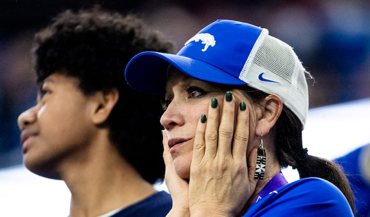 A BYU fan reacts after a play against Texas Tech during the Big 12 championship game at AT&T Stadium in Arlington, Texas, on Saturday, Dec. 6, 2025. | Isaac Hale, Deseret News