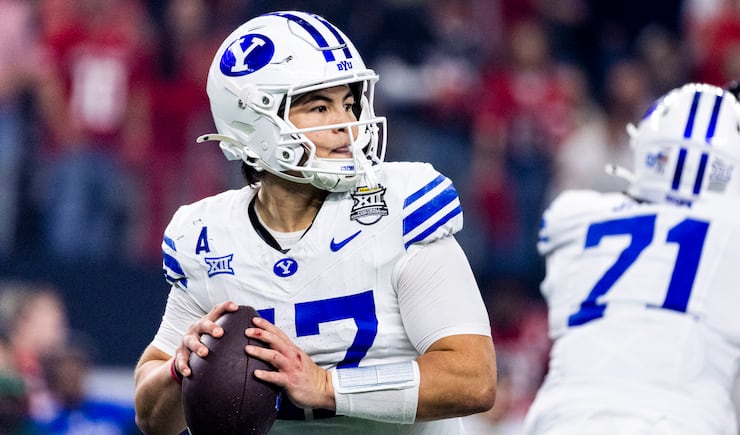 BYU quarterback Bear Bachmeier (47) winds up for a pass during the Big 12 championship game against Texas Tech at AT&T Stadium in Arlington, Texas, on Saturday, Dec. 6, 2025. | Isaac Hale, Deseret News