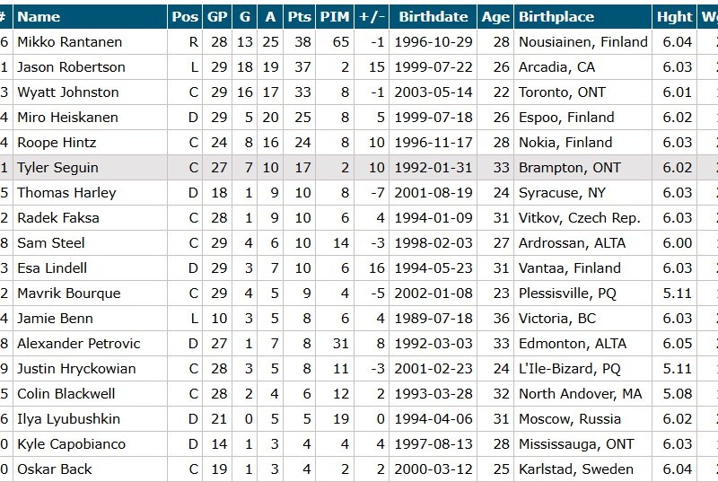 Jason Robertson – Roope Hintz – Jamie Benn