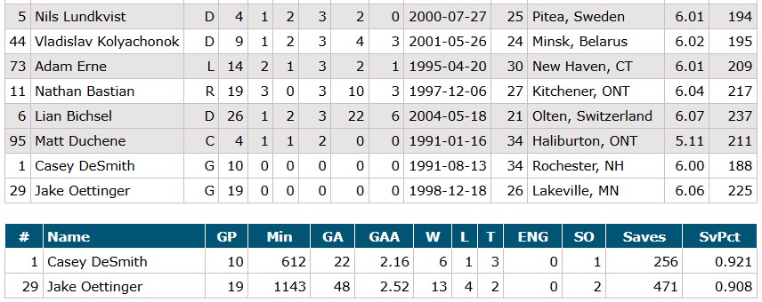 Goalies: Jake Oettinger and Casey DeSmith