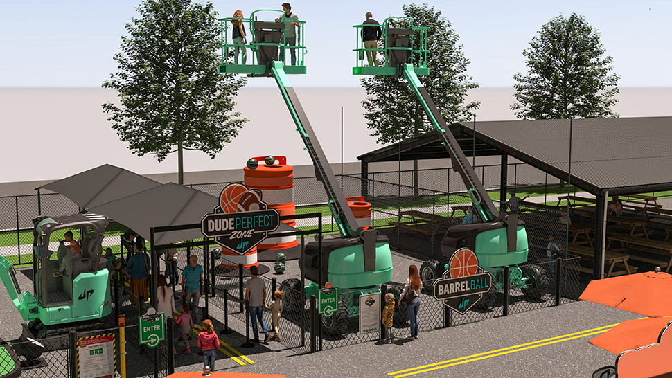 Rendering of the Dude Perfect Zone at Dig World Grapevine. Caterpillar is a multi-year sponsor and its machinery will be featured throughout the park. [Image: Dig World]