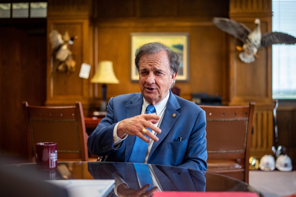 Then-Texas A&M Chancellor John Sharp in his office in College Station on March 27, 2023. Sergio Flores for The Texas Tribune