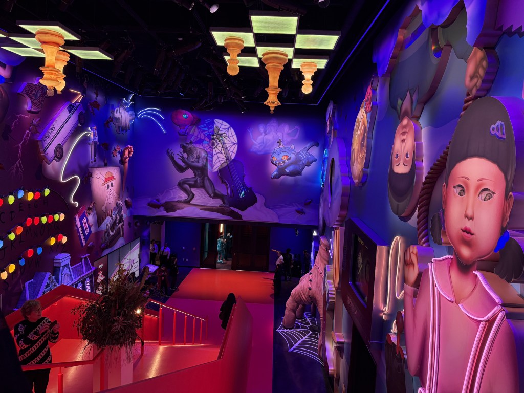 The lobby’s 3D art installations range from Stranger Things’ alphabet wall to Squid Game’s Young-hee.