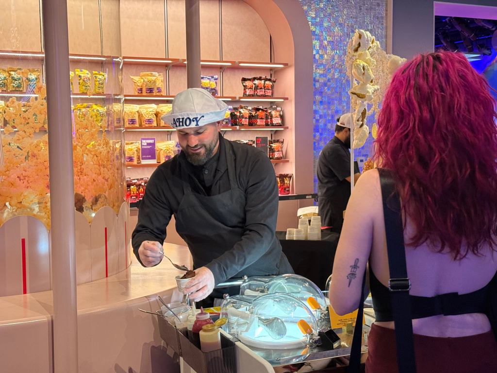 Speaking of bites, the Netflix Bites lounge is a culinary adventure in its own right. Whether you’re in the mood for a quick snack or a full meal, the menu offers something for everyone. The Preacher’s Classic Grilled Cheese & Tomato Soup is a comforting favorite, while the WWE Smashburgers pack a flavorful punch. For dessert, don’t miss Eleven’s Waffle Gelato, a sweet nod to Stranger Things. The House Popcorn Cake, meanwhile, is a whimsical blend of browned butter cake, popcorn pastry cream and caramel popcorn.