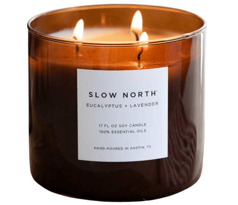 Slow North’s Signature 3-Wick Candle delivers an even, warm burn and a subtle Eucalyptus + Lavender aroma made for bigger spaces and sensitive noses. $59