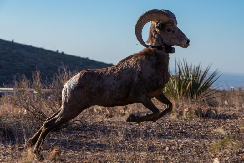 Bighorn sheep are released into Franklin Mountains State Park on Dec. 4, 2024. (Corrie Boudreaux/El Paso Matters)