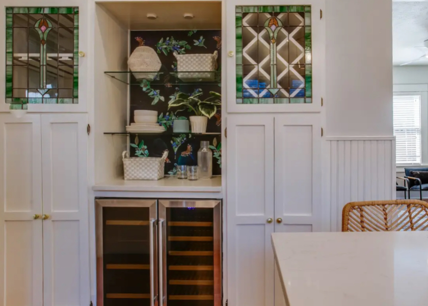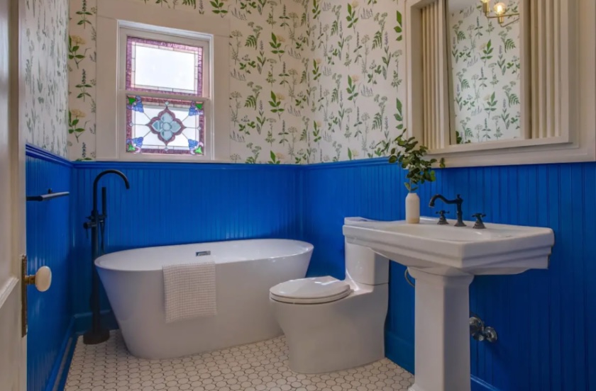 This house was enhanced with each new owner. By 2024, the kitchen had been updated and the principal bathroom transformed. Most recently, it’s had two new HVAC systems and a new roof put in. All of this has been done without the house losing a bit of its charm. There are still beautiful hardwood floors, stained glass accents, and a joyful, bright blue bathroom that offers just the right amount of personality.