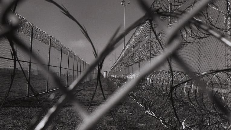A guard tower and razor wire at a prison in Texas. (Photo by Andrew Lichtenstein/Corbis via Getty Images)