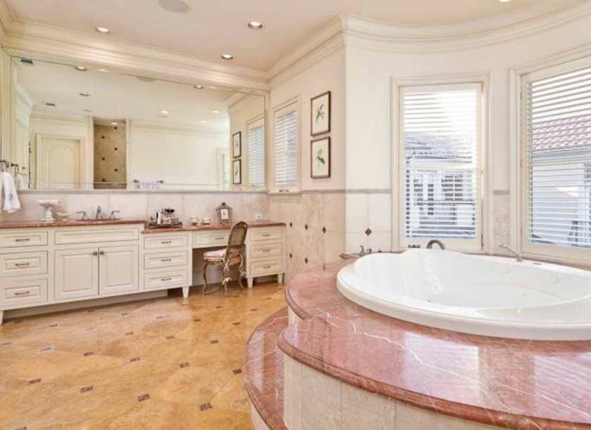 The Beverly Drive home is now a showplace with some features you’ll have to call the Realtor to view, like the spa room with a built-in sauna and the state-of-the-art theater room.