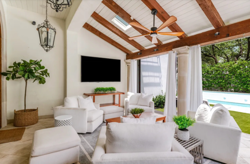 In addition to all of the beautiful updates, the Beverly Drive home offers exceptional outdoor amenities, including a resort-style pool and spa, multiple dining areas, and a fully equipped outdoor kitchen. Additional features include a spacious three-car garage and advanced smart home technology.