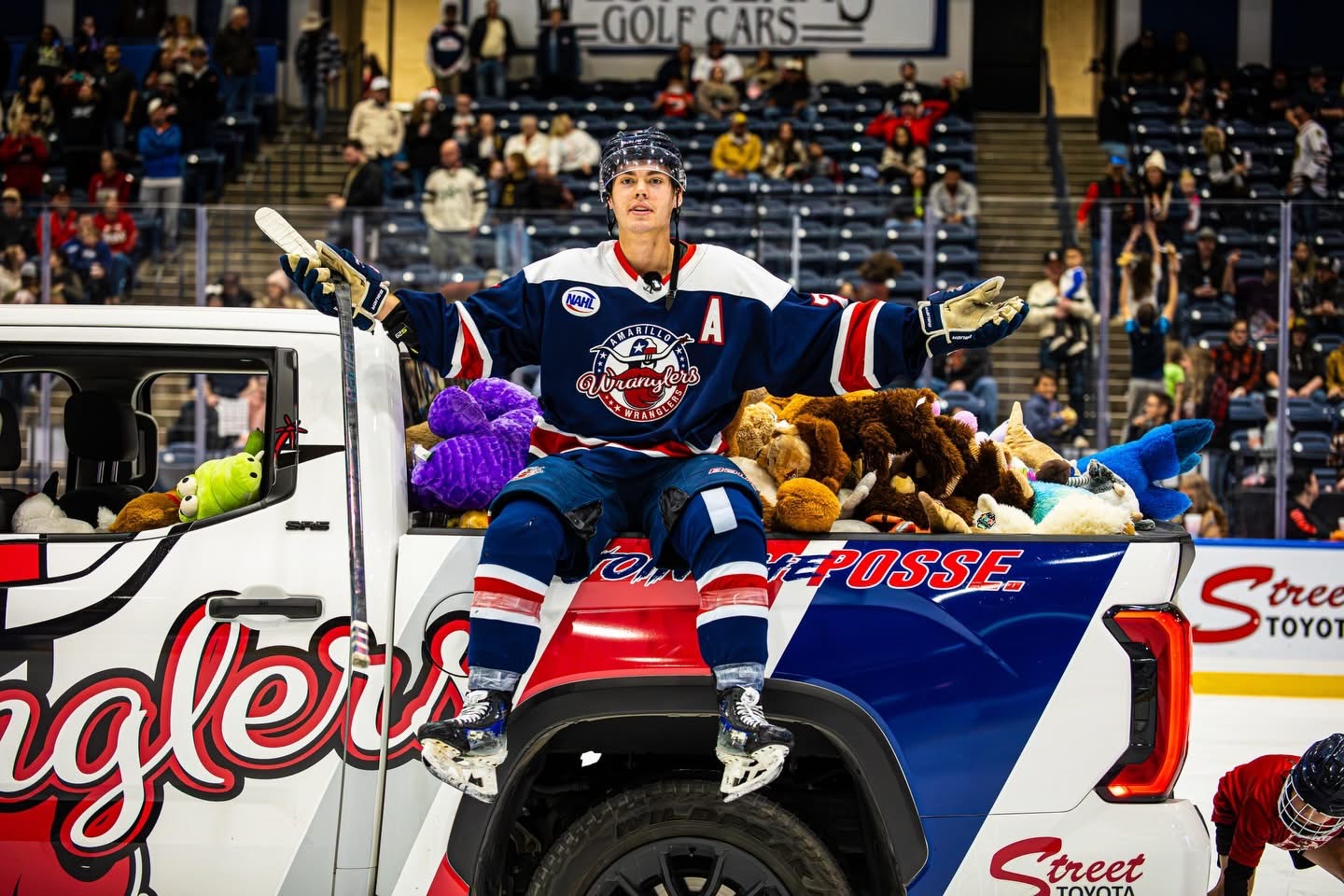 Friday night’s First Star of the Game went to Amarillo Wranglers center and first liner, Ty Izadi. Izadi came to Amarillo towards the end of last season from the Danbury Hat Tricks and has matured and contributed mightily to Amarillo on and off the ice.