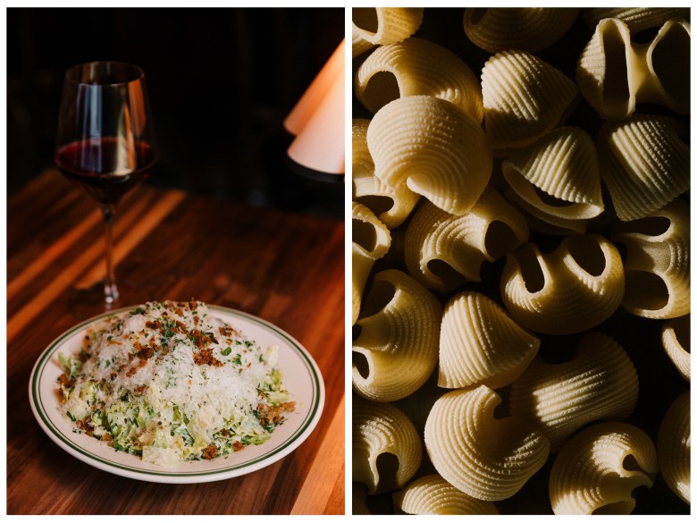 Rocco’s is the creation of chef Nicholas Ford, who came to Austin from the Northeast and started using his Italian American cooking skills as part of the McGuire Moorman Lambert restaurant empire (at Sammie’s and Favorite Pizza, specifically). Ford clearly draws inspiration from cities like Brooklyn and Boston, where casual, family-style pasta restaurants using recipes developed by Italian nonnas flourish. Anyone who’s spent time in these cities – or Midwestern equivalents like Chicago – will recognize the dim lighting, the dark polished wood, the framed vintage photos on the walls, and the very relaxed energy. When I visited, I dined amongst groups of friends and colleagues, long-established couples on chill weeknight dates, and chatty local residents grabbing a solo bite at the bar. The community spirit buzzes through every aspect of this space, and it makes Rocco’s a very pleasant place to spend an evening.