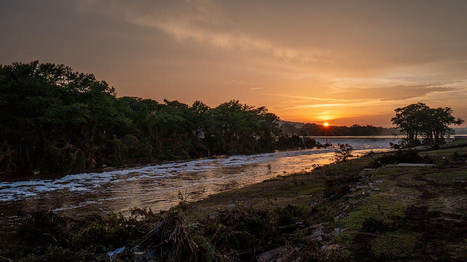 KERRVILLE, TEXAS – JULY 06: The sun sets over the Guadalupe River on July 06, 2025 in Kerrville, Texas. Heavy rainfall caused severe flooding along the Guadalupe River in central Texas, leaving more than 70 people reported dead. (Photo by Brandon Bel
