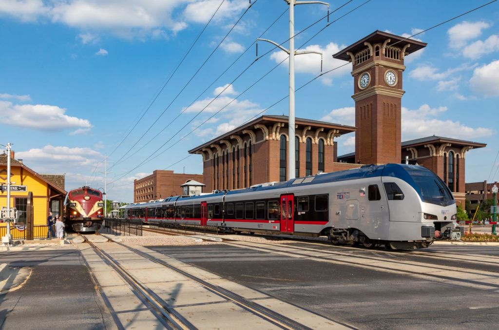 A TEXRail train arrives in Grapevine, a popular destination for passengers on the Trinity Metro service. (Courtesy photo | Trinity Metro)