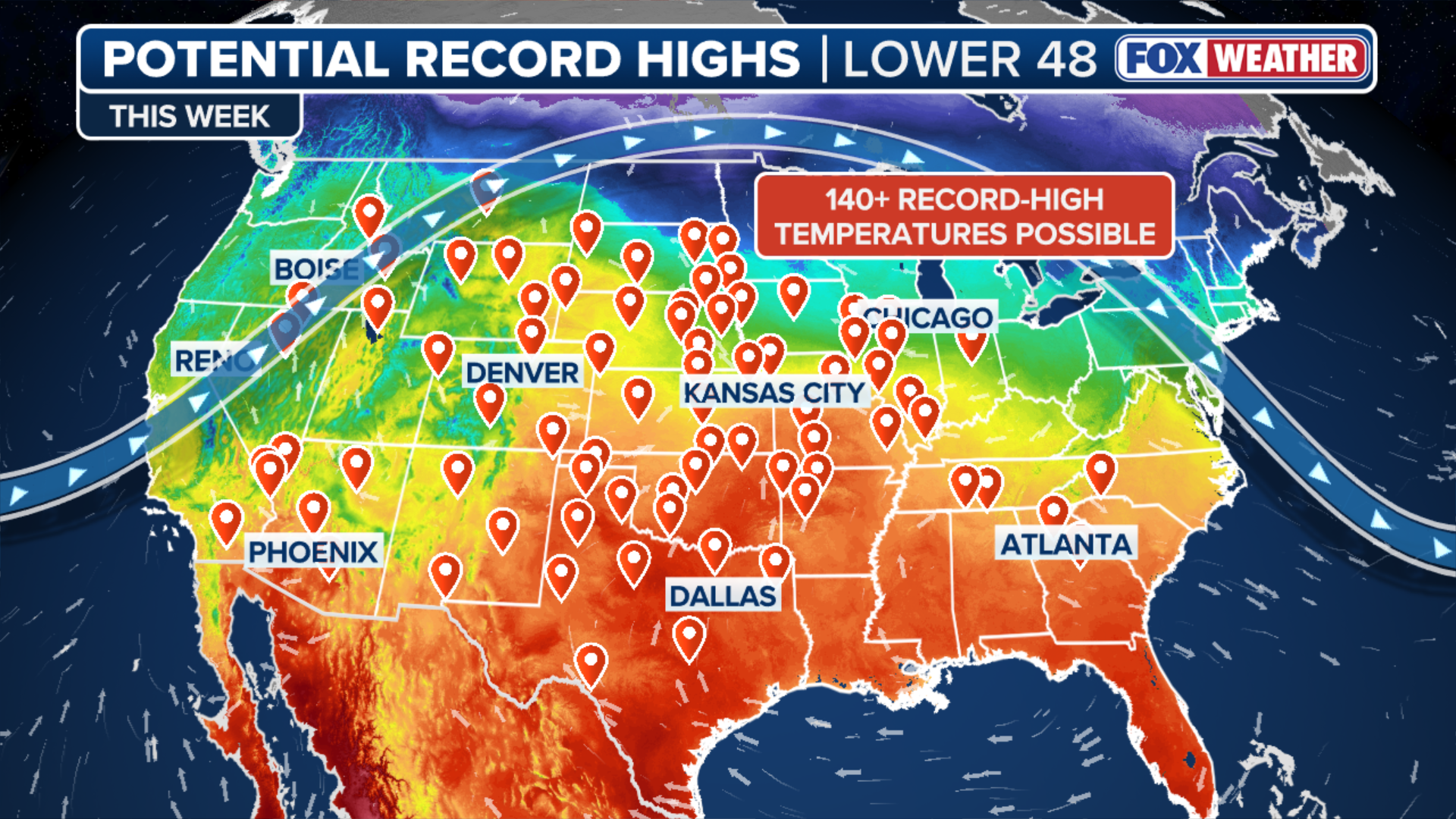 More than 100 daily record highs across the U.S. are in jeopardy this week.