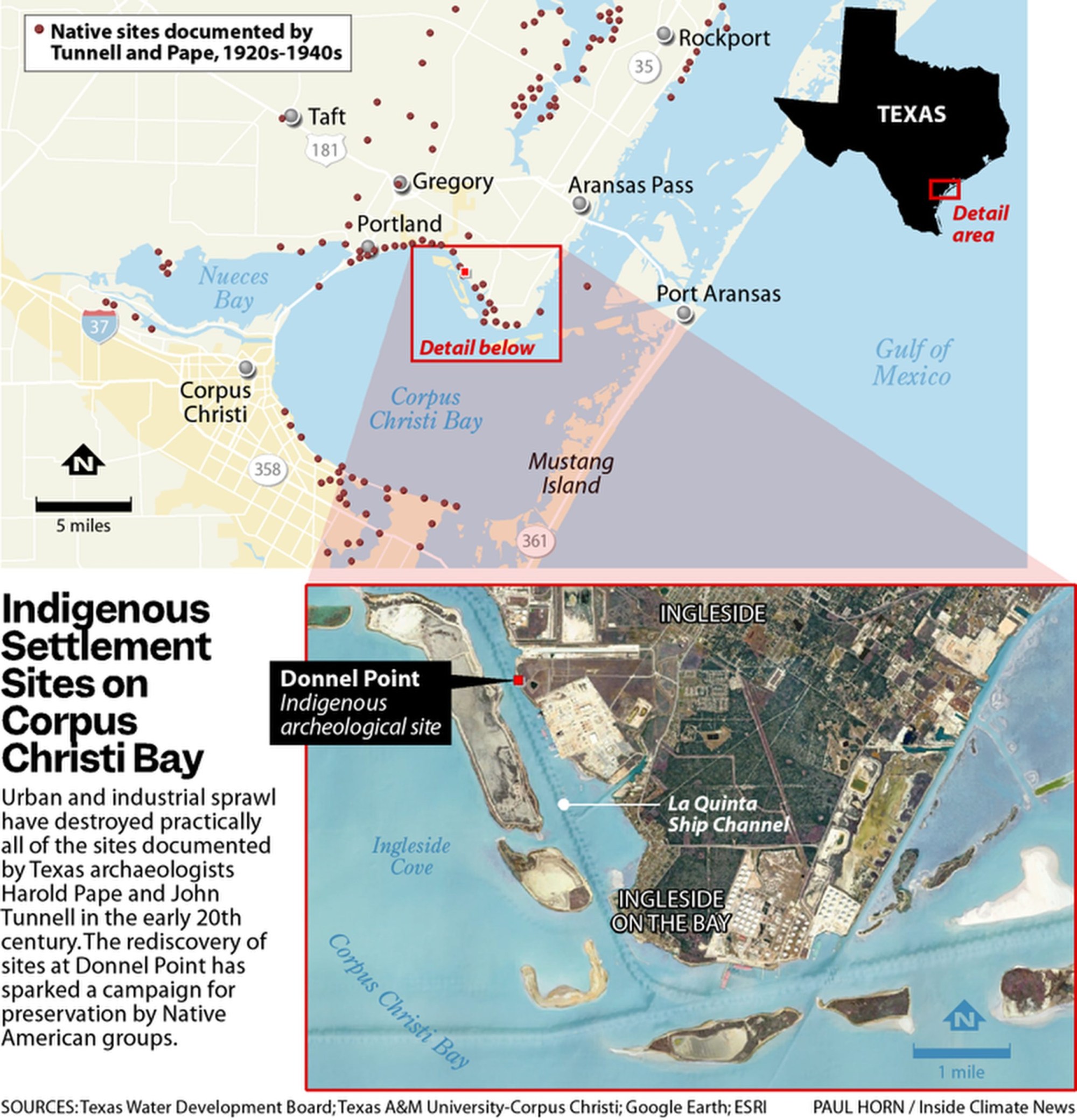 INGLESIDE — The rediscovery of an ancient settlement site, sandwiched between industrial complexes on Corpus Christi Bay, has spurred a campaign for its preservation by Native American groups in South Texas.
