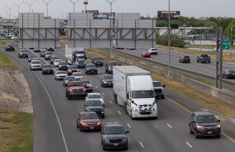 Cars drive in traffic along I-35 South in San Antonio. Credit: Bria Woods / San Antonio Report
