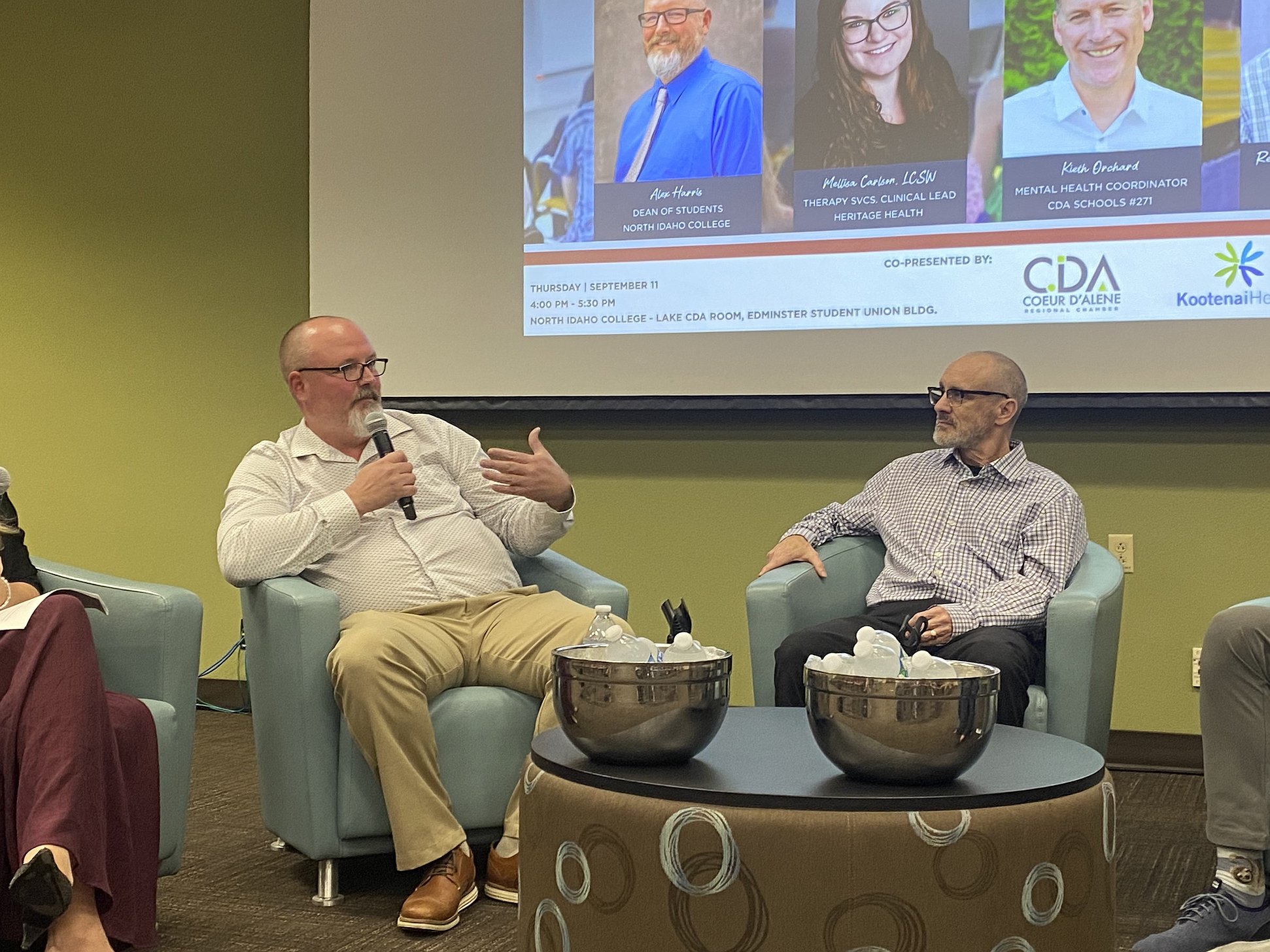 North Idaho College dean of students Alex Harris speaks during a panel on youth mental health Thursday at NIC.