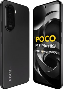 The Poco M7 Plus features a 6.9″ 144Hz FullHD+ LCD and packs a 7,000 mAh Si/C battery with 33W charging support. The rest of its highlights include a 50MP primary, an 8MP selfie camera, a side-mounted fingerprint scanner, 18W reverse wired charging, and an IP64 rating.