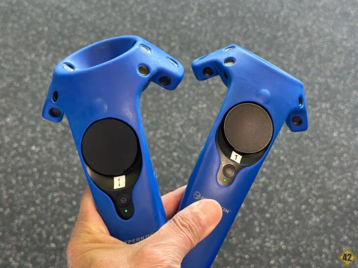 The remainder of the space is broken up into nine large VR booths (10×10) where each player has their own dedicated play area, a connected VR goggles set… and you will be handed your set of hand controllers, one for each hand.