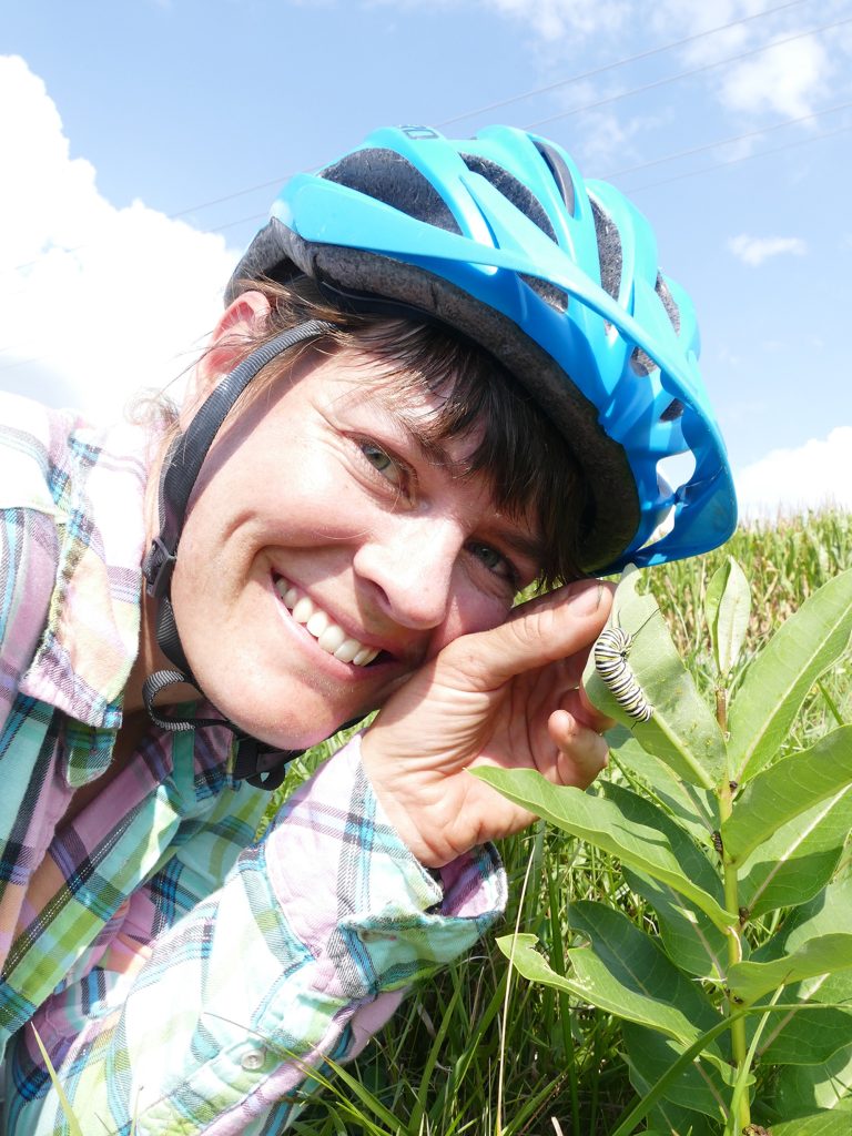 Sara Dykman, here with a monarch caterpillar, is the author of “Bicycling with Butterflies,” about her 10,000-mile-plus bike trip following the migration of monarch butterflies. Free copies of her book are available at CMC campuses now. She will visit eight CMC campuses this October during a series of author talks.250709-FP-CW-common-reader-sara-dykman