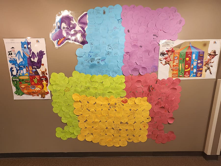 Another fun activity for the kids was building a food group dragon. Each child was given five circles and wrote down their favorite food from each food group.