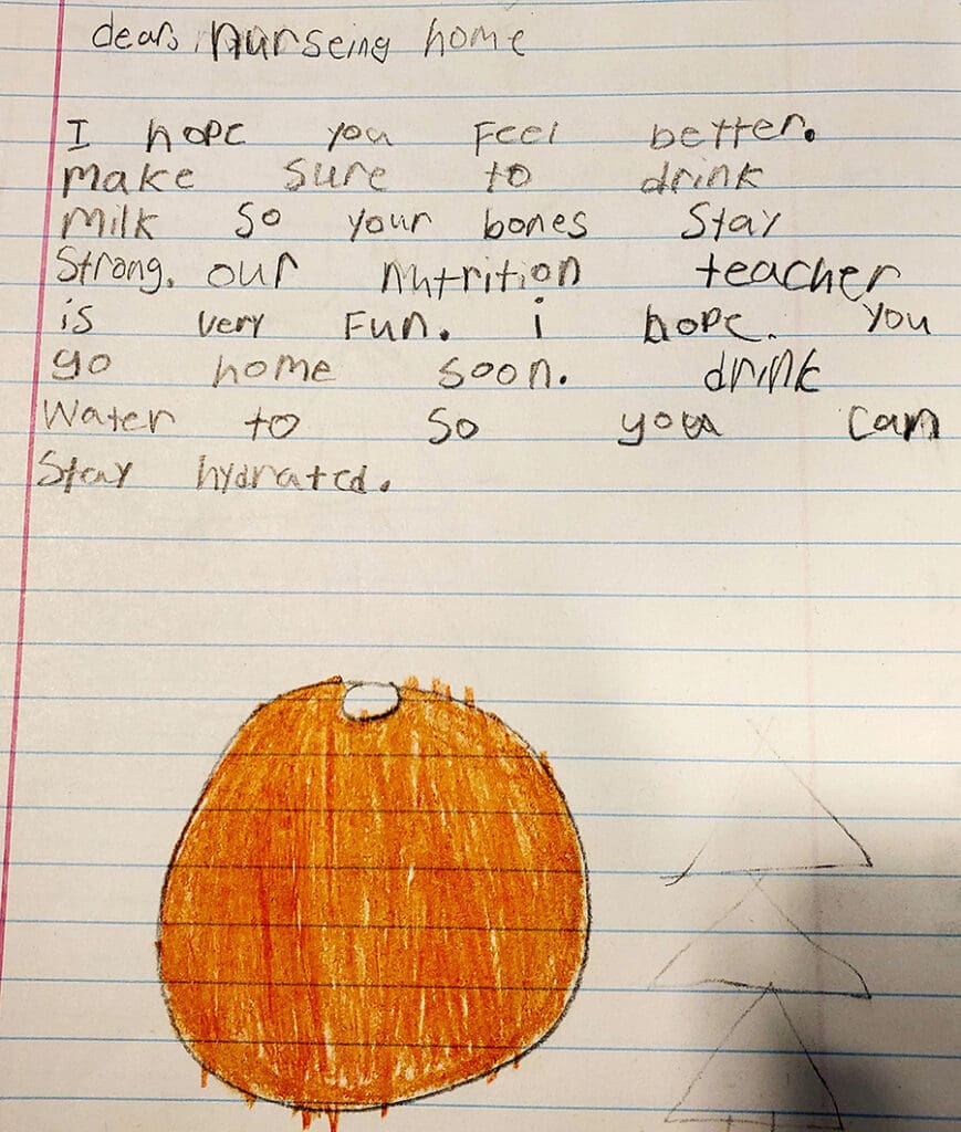 “I didn’t intend for this activity to be as meaningful as it was,” she said. “It really touched the kids and made them think about others and their circumstances. These letters lifted the spirits of over 100 precious men and women who had become so sad during the final chapter of their lives — it made them smile again.”