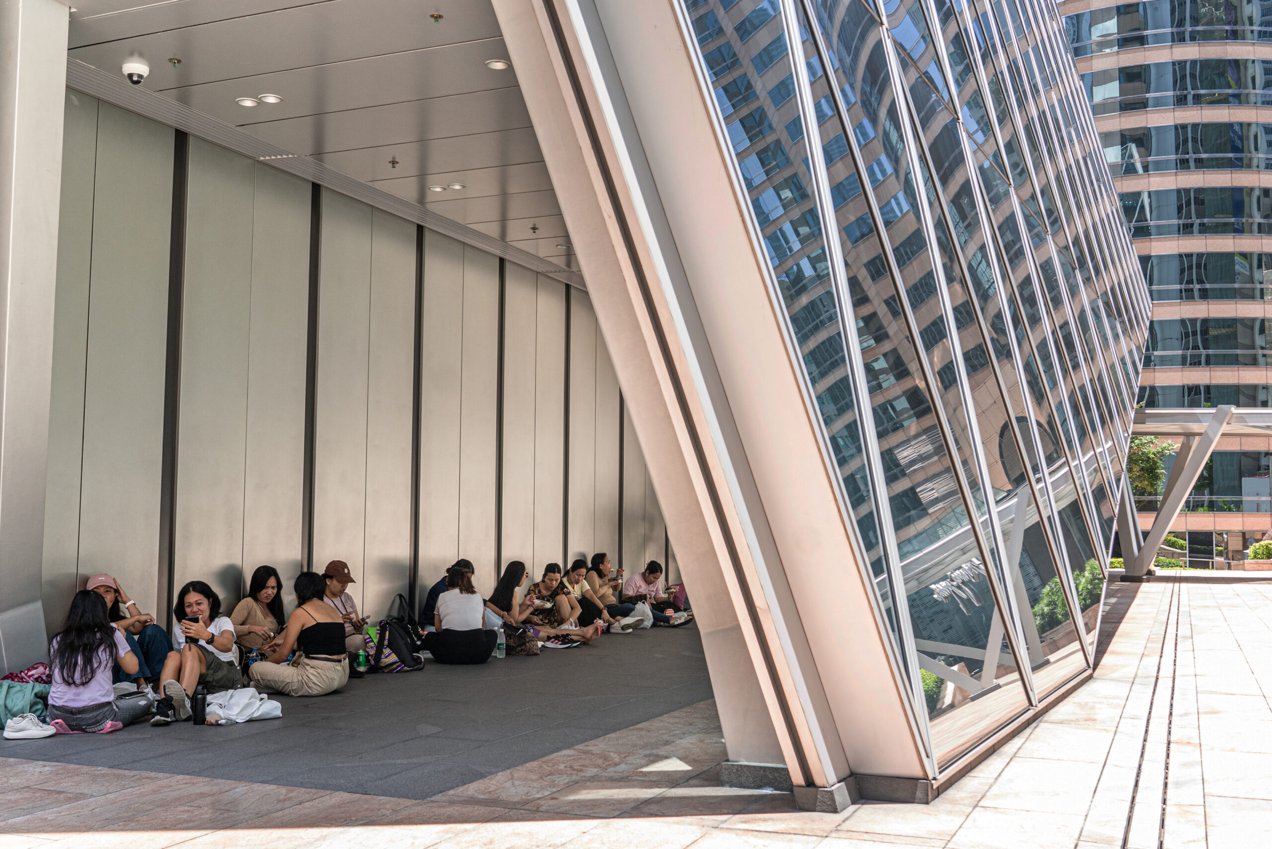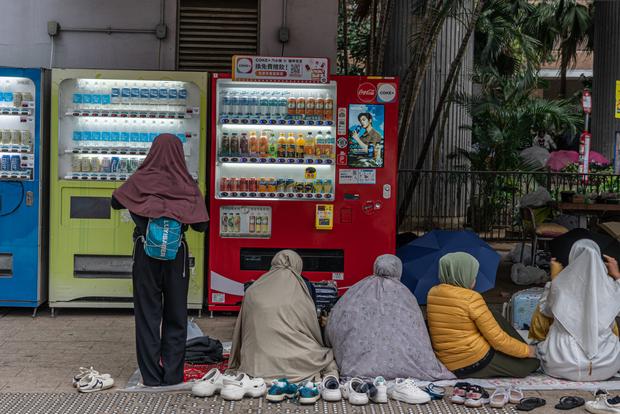 Domestic workers gather in Hong Kong’s Central district on Sunday, June 8, 2025. These workers, mostly women from the Philippines and Indonesia, congregate in public areas on their one rest day per week, which is typically Sunday.