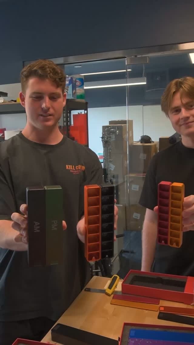 Brothers Tavish and Breton Rice shared an unfortunate experience: Watching their father, who suffers from a neurological condition, struggle with the vessels containing his numerous medications. “We watched our father go through every issue imaginable with his pill containers,” they write. “Breaking, spilling, accidentally opening–constantly. Handling a flimsy plastic pill box is already a hassle, and even more so when your hands aren’t working very well due to his disease.