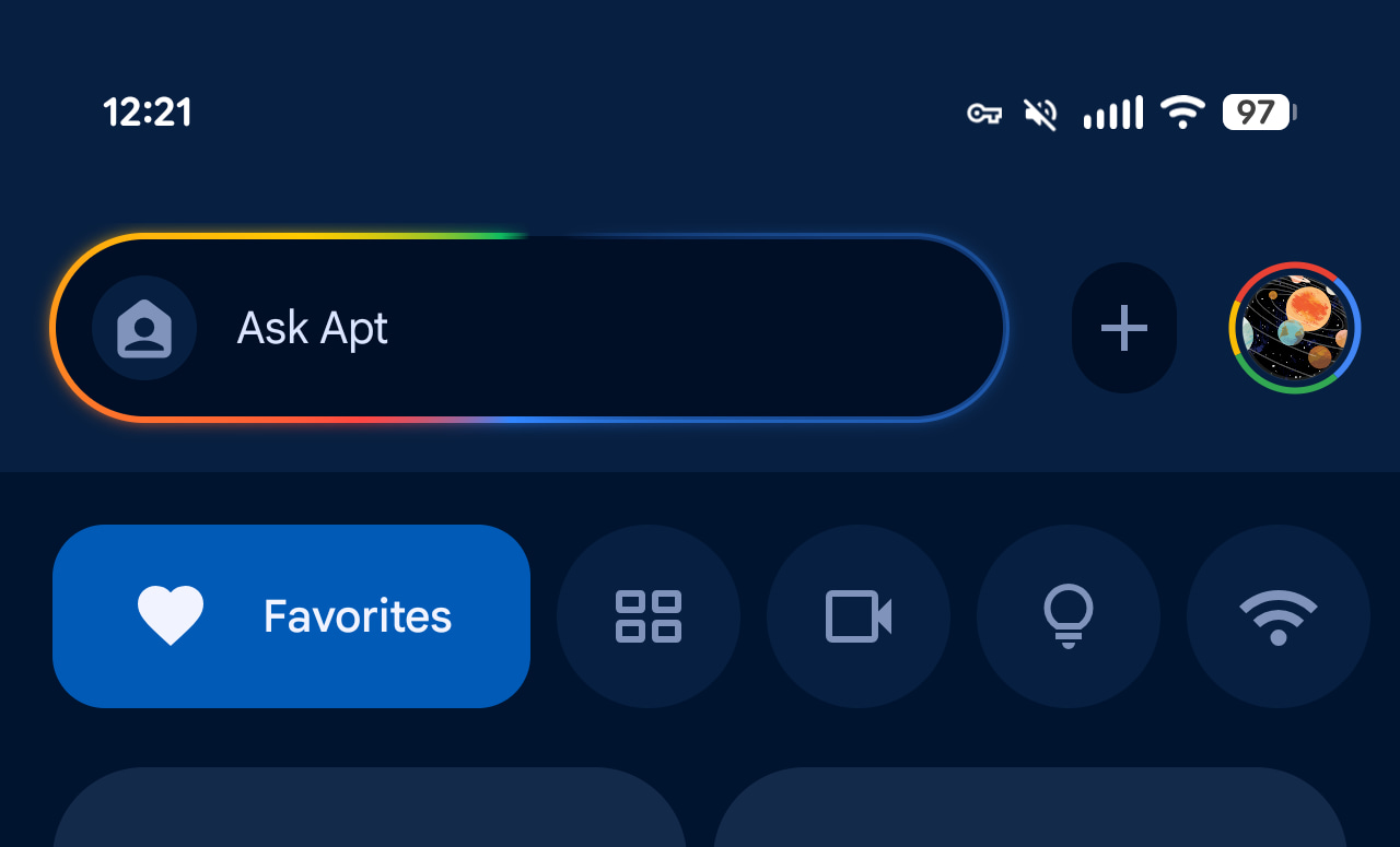 The redesigned Google Home app features some Material 3 Expressive components like morphing buttons when you swipe between the Home feed’s top tabs and in the Automations creator. The “Ask Home” field is similar in function to a search app bar, while the glow that appears on app launch is certainly delightful. That said, it’s still a tall bottom bar.