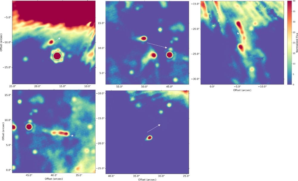 These images from the research show the unusual dusty clumps that formed around the stars. These are similar to proplyds and demonstrate that the dust is long-lived. Image Credit: Richardson et al. 2025. ApJ
