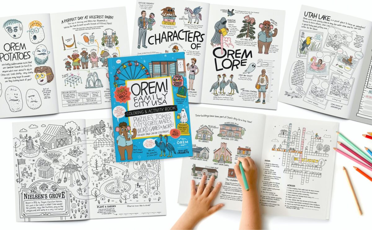 The book was created by “Your Very Favorite” coloring book activity creators Mike and Alma Loveland and Holly Sparks, in coordination with Orem City Events Planner Sydney Bailey and Orem Communications Manager Pete Wolfley.