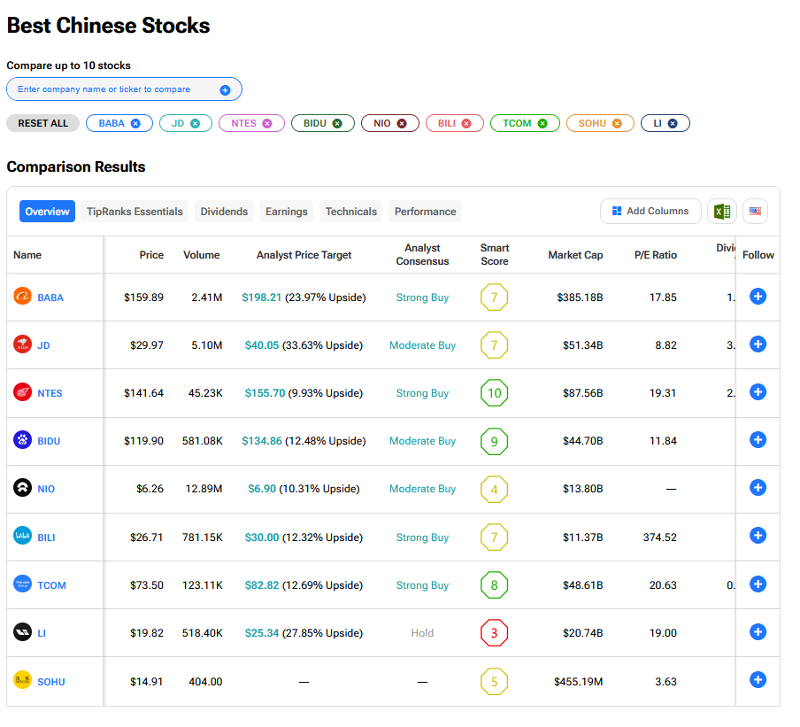 We have rounded up the best Chinese stocks to buy now using our TipRanks comparison tool.