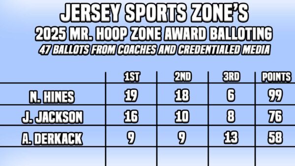 Hines was named JSZ’s Mister Hoop Zone for 2025 following San Antonio Spurs #2 overall pick Dylan Harper in our player of the year lineage. The Plainfield big man had 19 first place votes and 18 second place tallies to beat out Ridgewood’s Johnny Jackson who had 16 first place votes and 10 second place tallies.