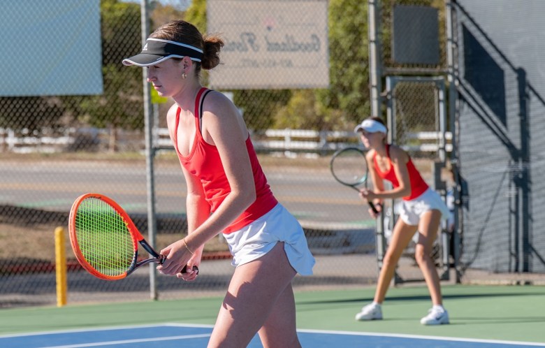 The San Marcos duo of Kate Selby (left) and Tate Jaeger dominated the Channel League tournament to earn the league’s Doubles MVP awards. (Lily Chubb / Noozhawk Photo)