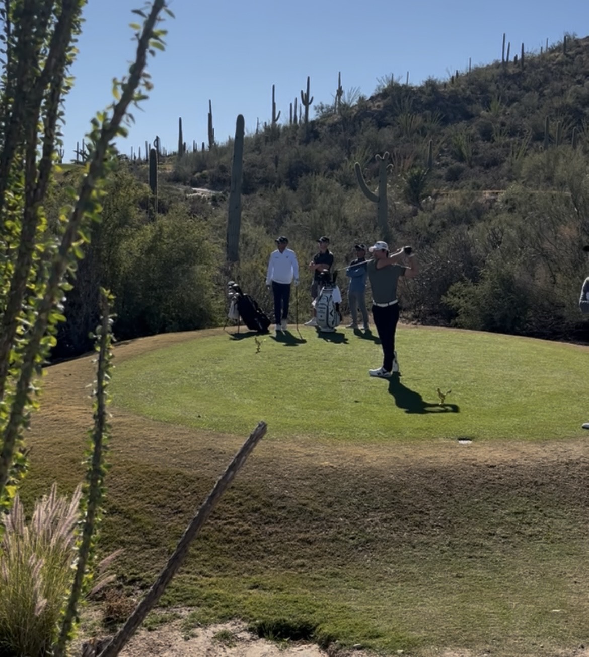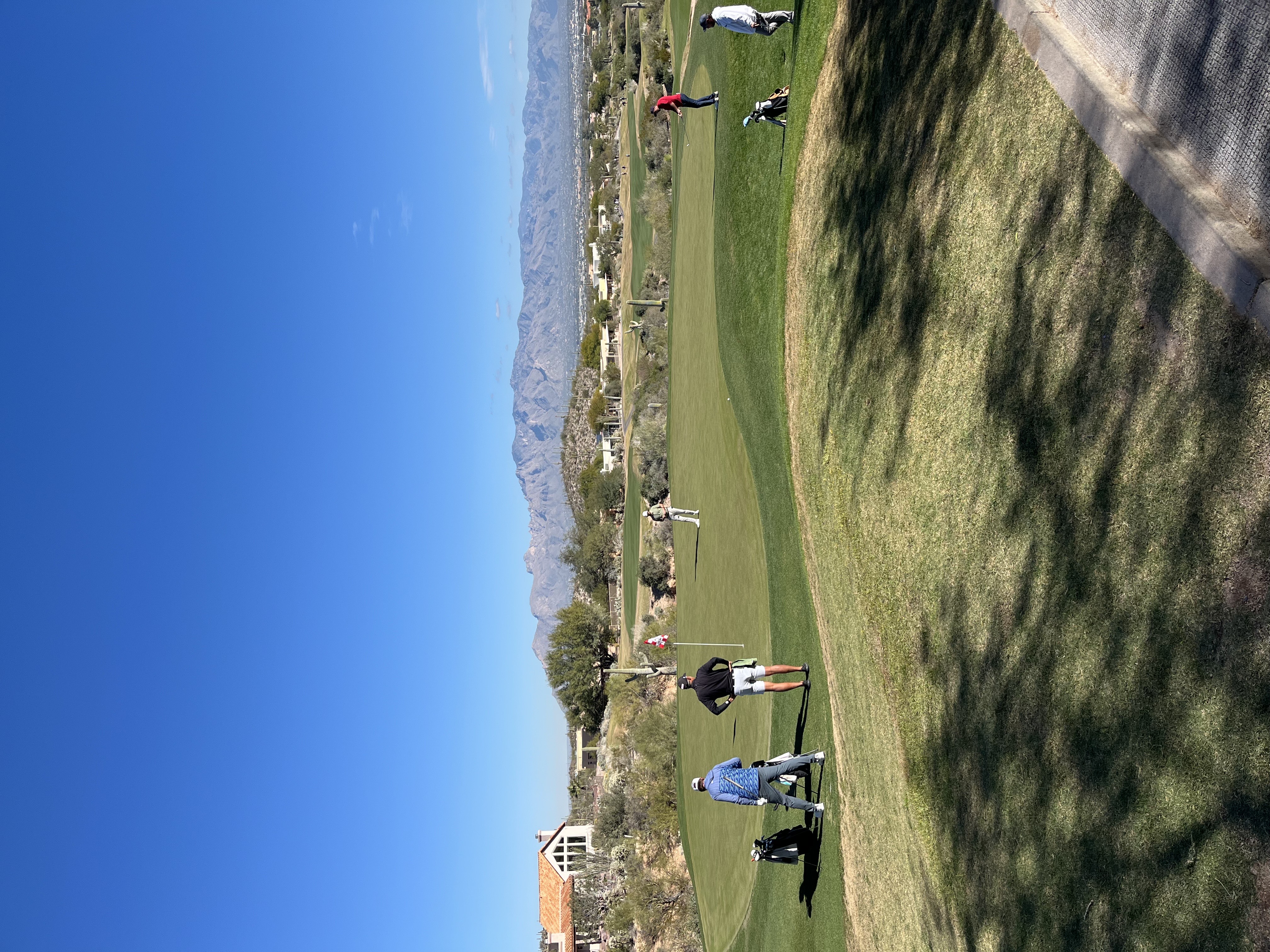 It was just under 50 degrees when the group teed off. It would’ve felt cold had there been any breeze, but the air was breathless. O’Hair nearly holed a wedge on the second hole and tapped in for birdie. Stanley’s flat wedge trajectory was ill-suited to Starr Pass’s new greens—the ball skidded forward like a billiards ball on felt.