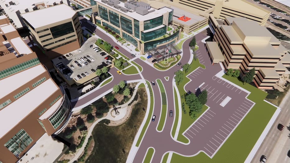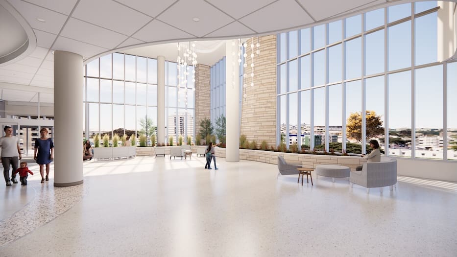“You’ll also see a covered entrance at the lobby level from the south parking, so we’ll have dedicated parking and the ability to get into the building that way,” Place said. “The top of the garage is our helipad, so for moms in distress we can take care of them.”