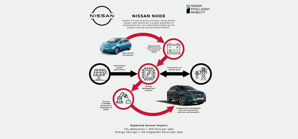 Nissan Australia says it has completed a solar and battery development at its casting plant in Victoria which is using recycled end-of-life Nissan Leaf batteries as the energy storage component.